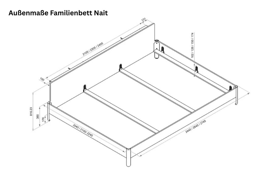 Das Nait Familienbett ist bewusst großzügig konzipiert und in verschiedenen Größen erhältlich, sodass es sich optimal an Ihre Familiensituation anpasst.